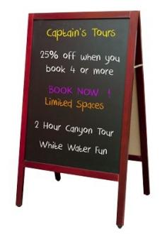 990 x 600 Overall Size A Frame ,730 x 530 writing area 2 sided and 35 x 18 mahogany style timber frame