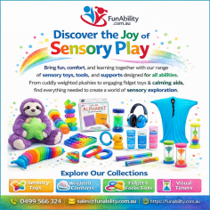 Explore FunAbility’s vibrant range of sensory toys, weighted comforts, fidget tools, and visual timers designed to support focus, calm, and learning. Create joyful, inclusive sensory experiences for home, school, or therapy with products made for all abilities.