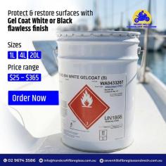Protect and restore surfaces with premium Gel Coat (White or Black) for a smooth, durable finish.