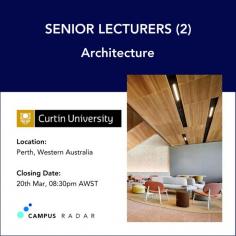 Apply now via Campus Radar https://campusradarjobs.com/job/curtin-university/senior-lecturers-2-architecture