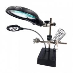 5 LED Desktop Jewelry Making Repair Loupe Magnifier with Soldering Iron Stand