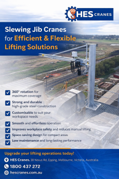 Slewing and swing jib crane solutions boost efficiency. HES Cranes offers safe, precise 360° lifting.